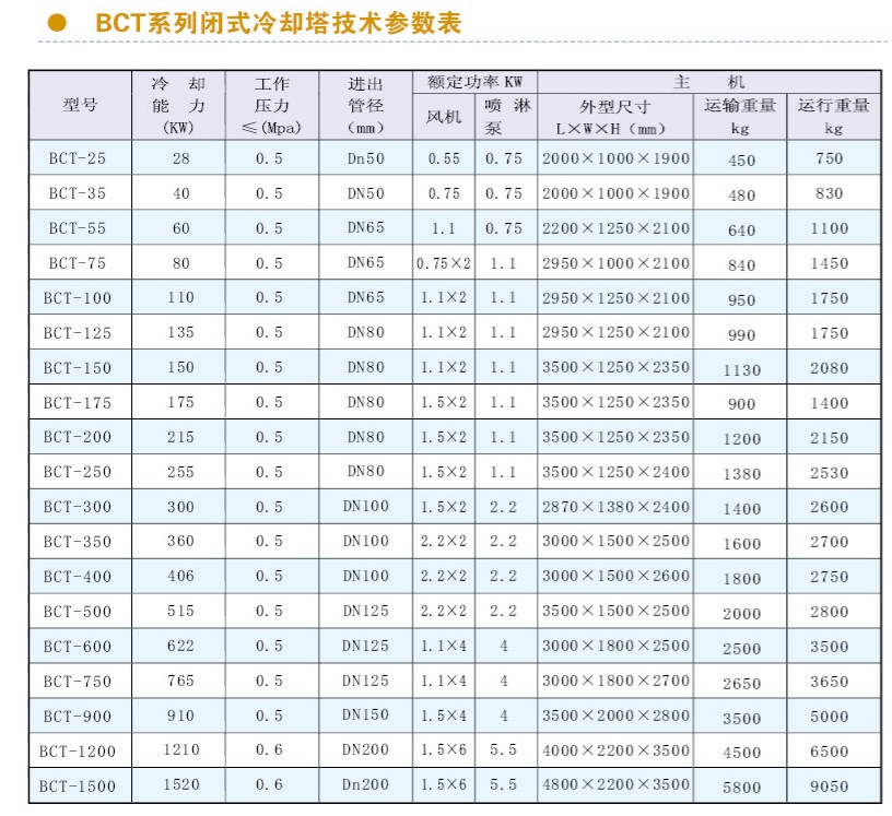 主機(jī)由殼體、換熱器、風(fēng)機(jī)、噴淋系統(tǒng)、收水器、水槽及管路閥門(mén)等零部件組成。
